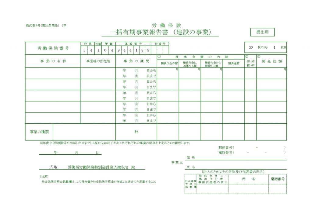 【様式第7号】一括有期事業報告書(建設の事業)