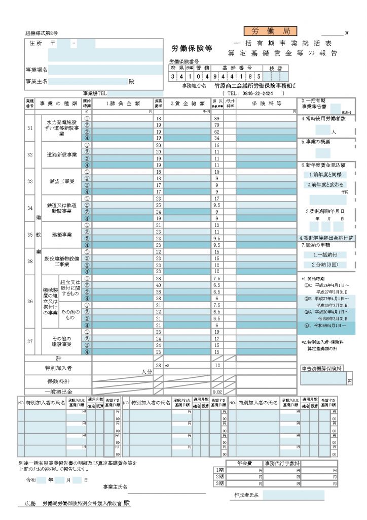 【様式第8号】一括有期事業総括表算定基礎賃金の報告